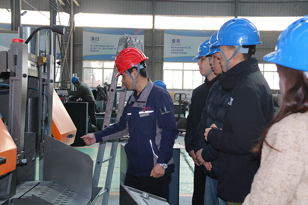 郭總首先從帶鋸床的不同類型、結(jié)構(gòu)原理以及不同類型帶鋸床的性能特點(diǎn)、重要技術(shù)參數(shù)入手,用多年的工作經(jīng)驗(yàn)和通俗易懂的語(yǔ)言進(jìn)行了詳細(xì)解說。為了使新員工更直觀地理解帶鋸床工作原理,郭總還讓相關(guān)技術(shù)人員啟動(dòng)機(jī)器,親自上手實(shí)操,并對(duì)帶鋸床運(yùn)行的相關(guān)步驟進(jìn)行了重點(diǎn)講解和示范。